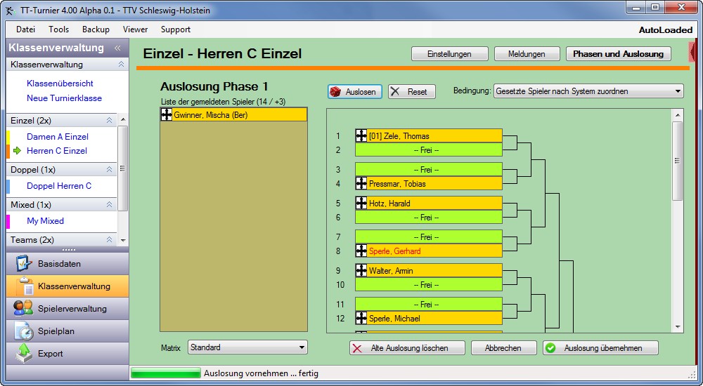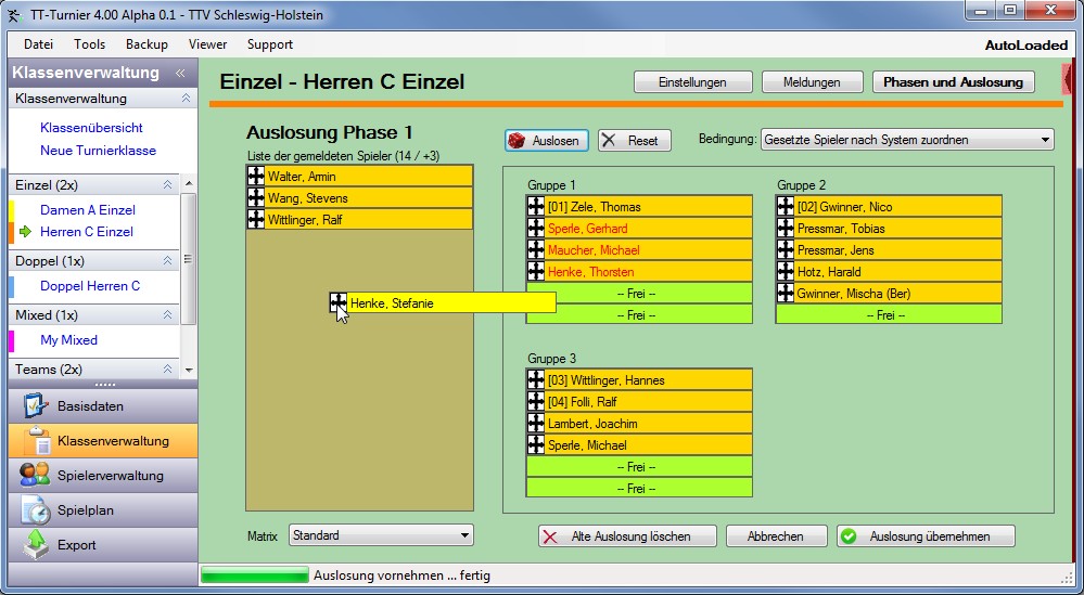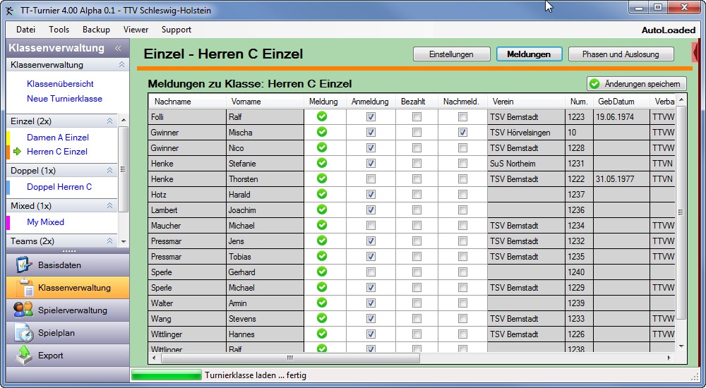 Erstellung von Spielklassen und Spielerzuordnung |
