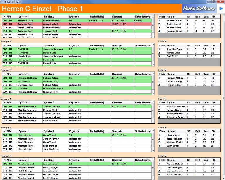 Übersicht über Gruppenauslosung (mit/ohne Ergebnisse) | ||